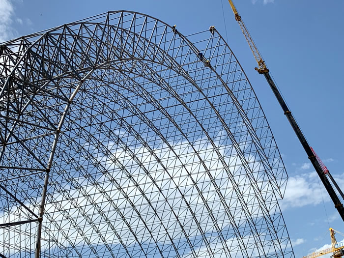 (2)网架加工前应对现场尺寸进行复测,确认无误后方可进行加工、安装;网架制作、运输、安装应遵守《空间网格结构技术规程》JGJ7-2010、《钢网架通州螺栓球节点》JG/T 10-2009、《钢网架通州螺栓球节点用高强度螺栓》 GB/T 16939-2016、《钢结构通州工程通州施工规范》 GB50755-2012、《钢结构通州工程施工质量验收标准》 GB50205-2020。